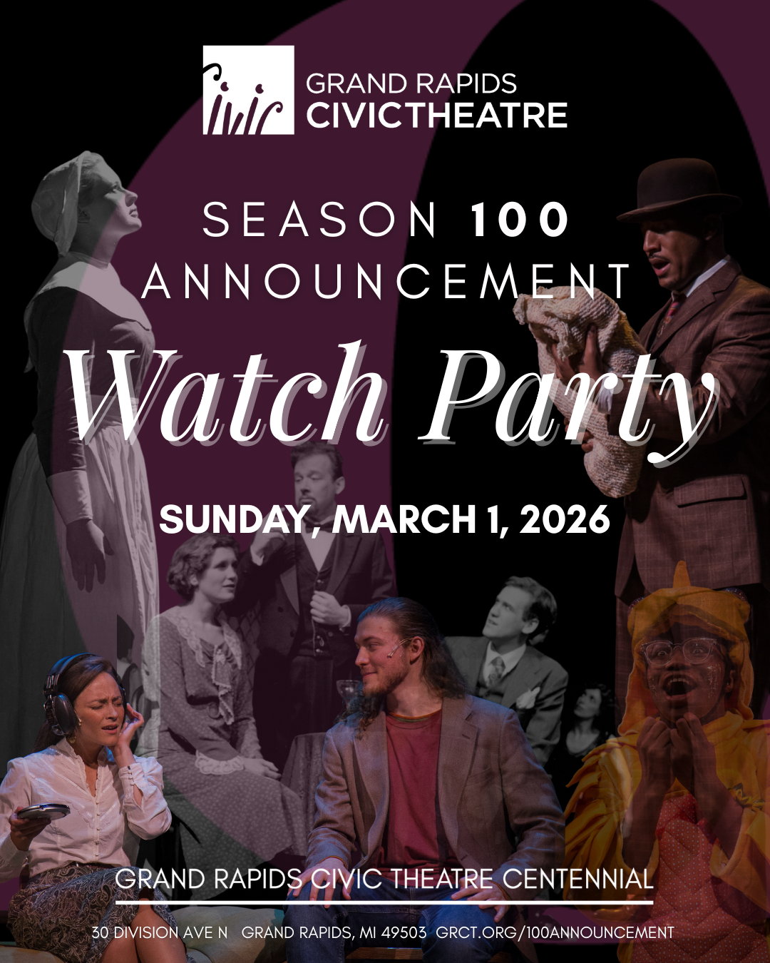 Join us in person at Grand Rapids Civic Theatre as our alumni, staff, and students come together to announce the much-anticipated Centennial Season.