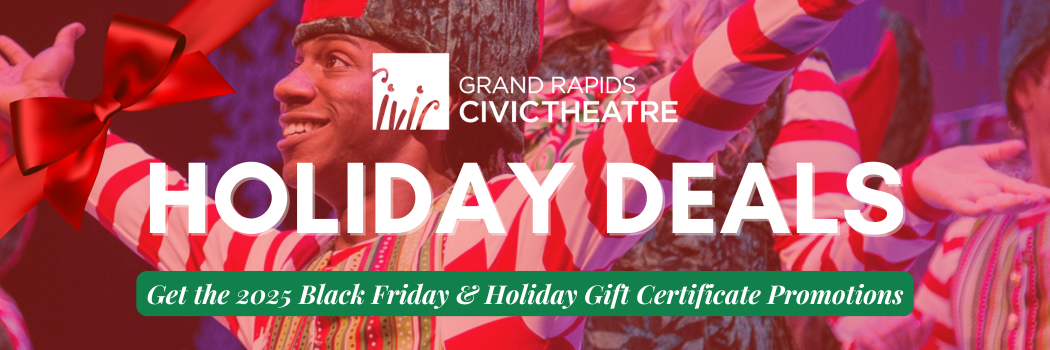 This holiday season, you can give the gift of live theatre in the very best way. Beginning Monday, November 24th through Wednesday, December 24th, 2025 for every $100 in gift certificates you purchase, you’ll receive two free tickets to an upcoming Grand Rapids Civic Theatre performance! That’s up to a $96 value for every $100 purchased!